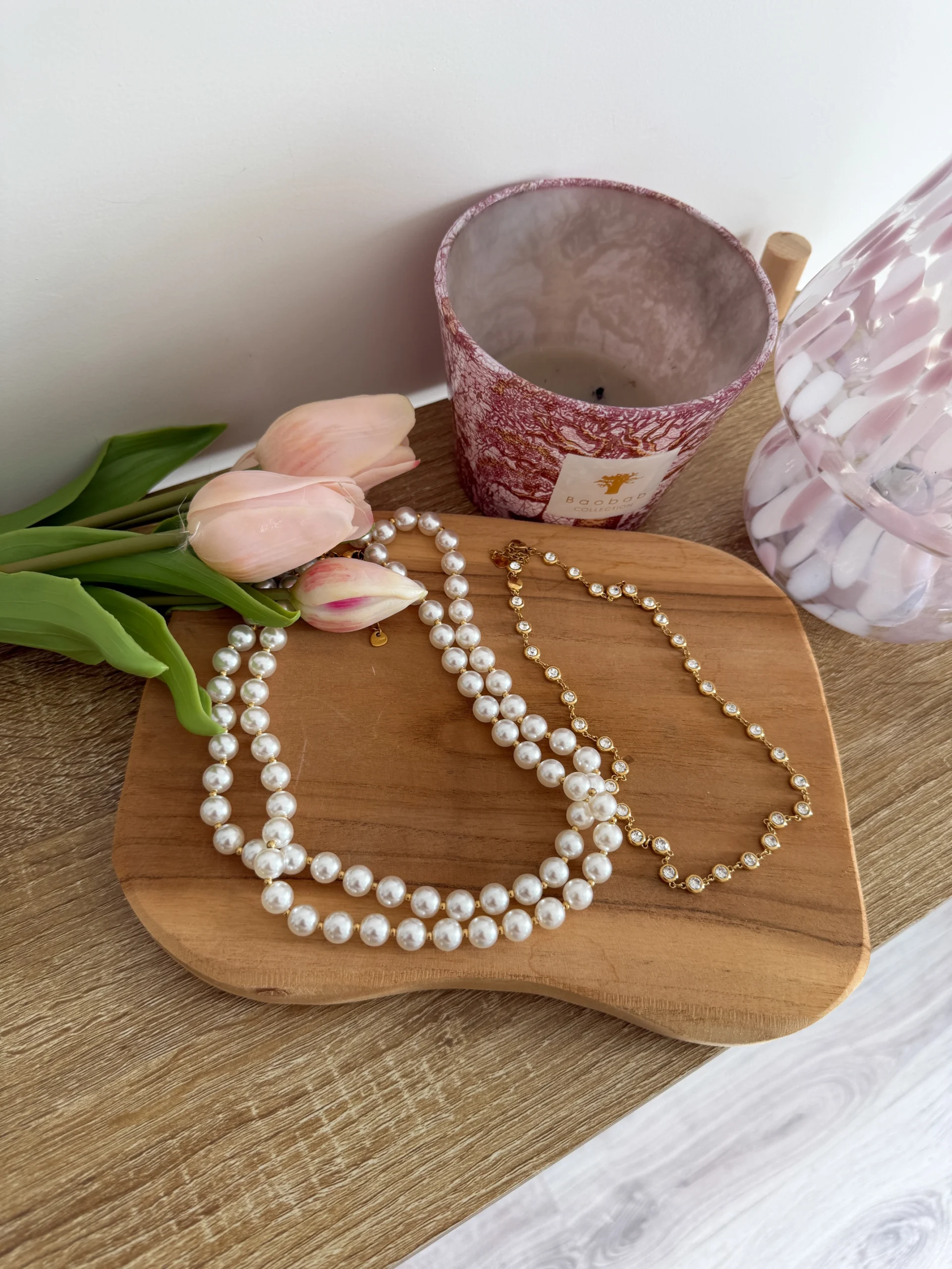 Avec ses rangées de perles délicates, il sublime le décolleté et illumine le visage avec douceur.