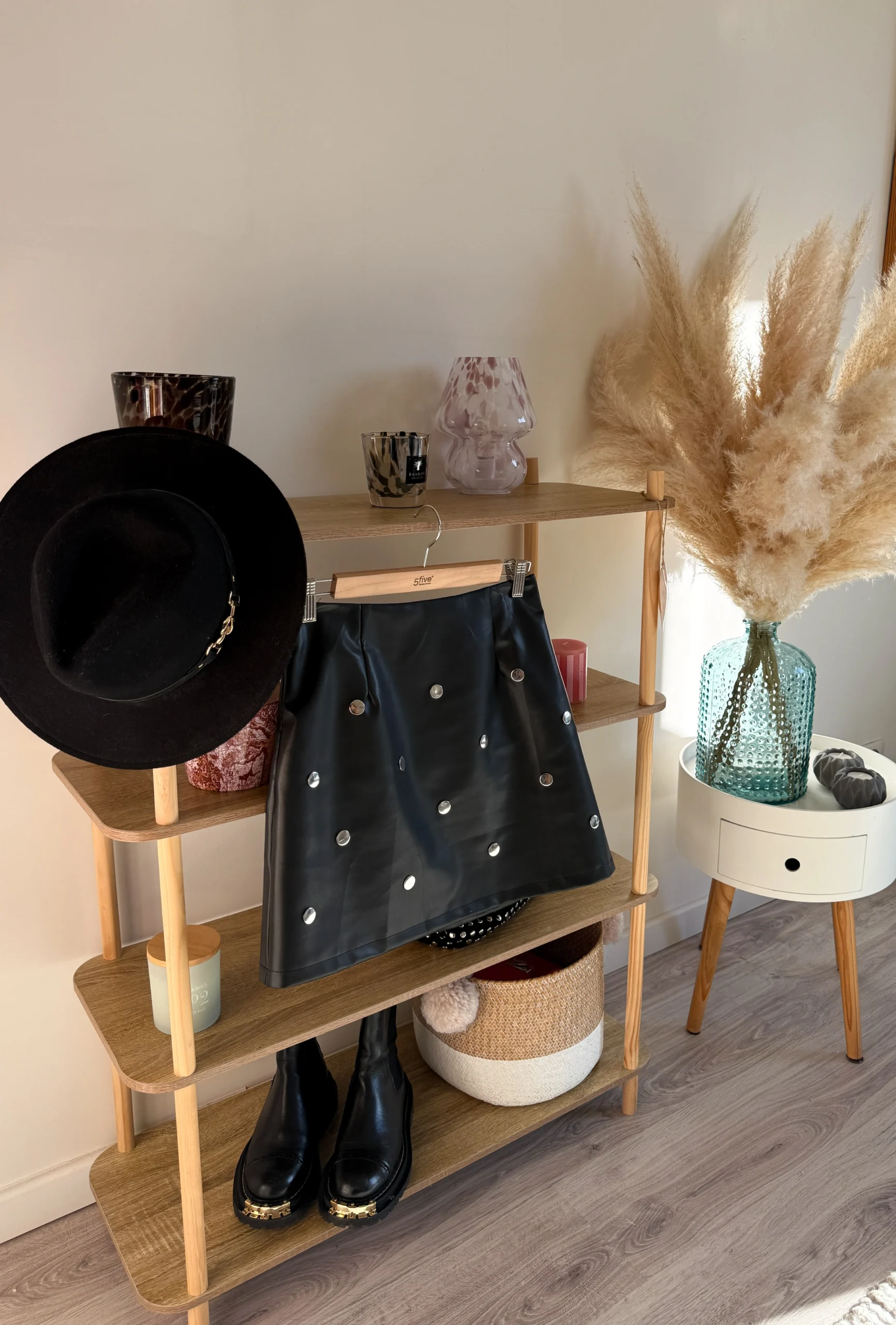 La jupe Ambre est la pièce parfaite pour apporter une touche de caractère à vos tenues. Son effet simili cuir lui donne un style affirmé et moderne, tandis que ses clous métalliques délicatement disposés ajoutent une note rock chic irrésistible.