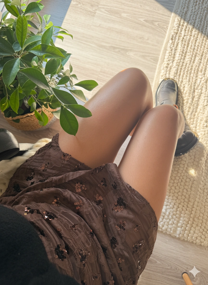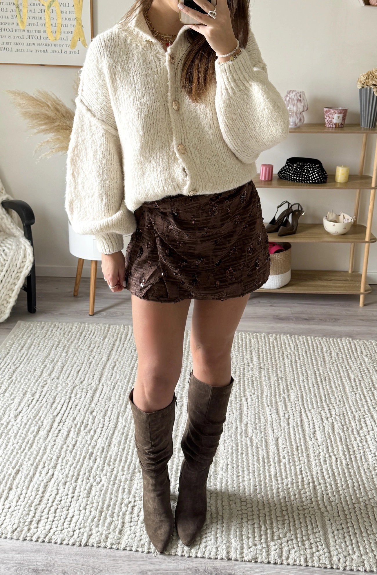 Sa couleur marron intense et ses détails en sequins délicats apportent une touche de lumière et de caractère à votre look.