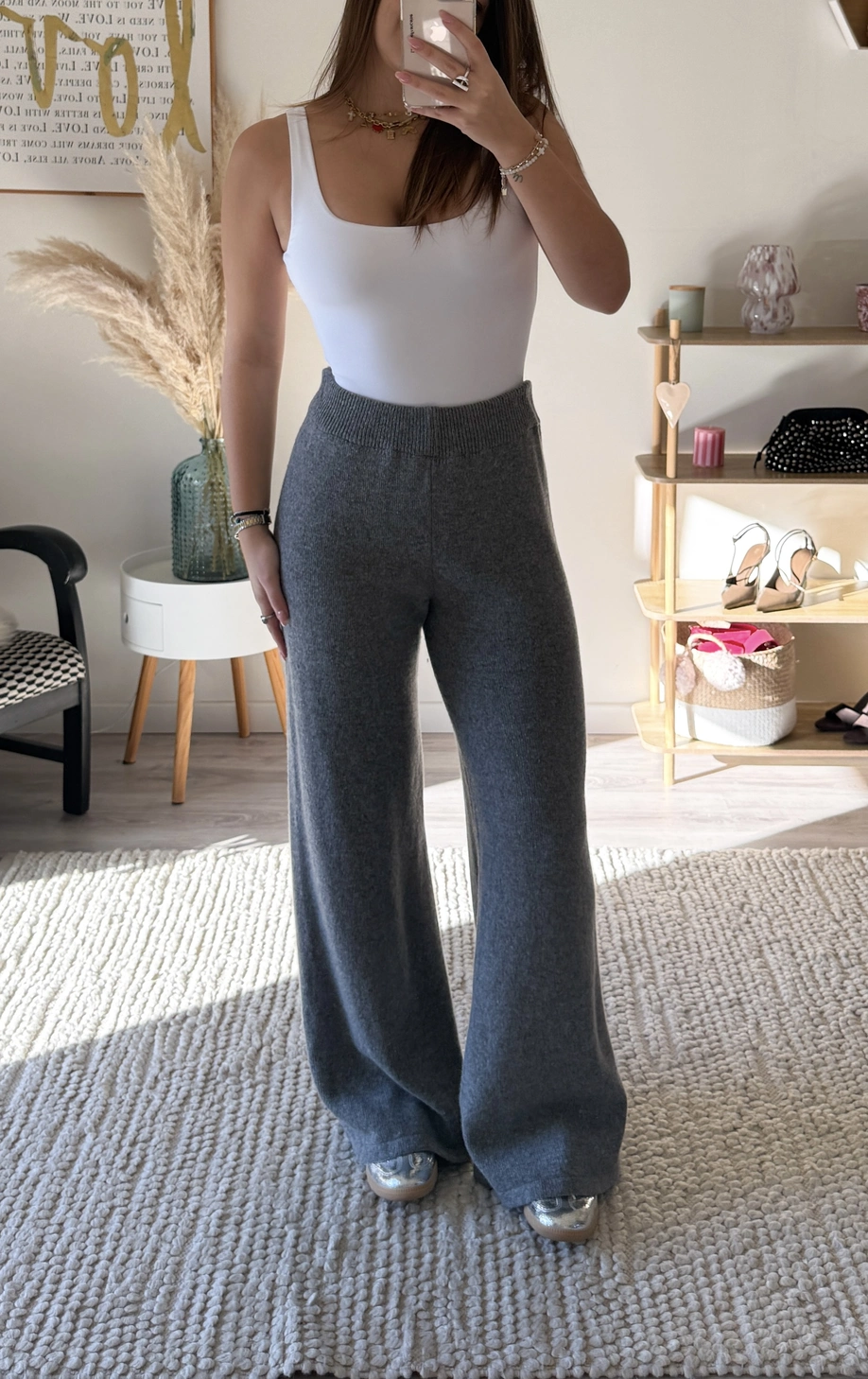 Sa coupe droite légèrement évasée apporte une allure moderne et fluide, parfaite pour un style à la fois cosy et chic. Associé au gilet MALIA, il forme un ensemble élégant et harmonieux, idéal pour vos journées détente comme pour vos sorties plus habillées.